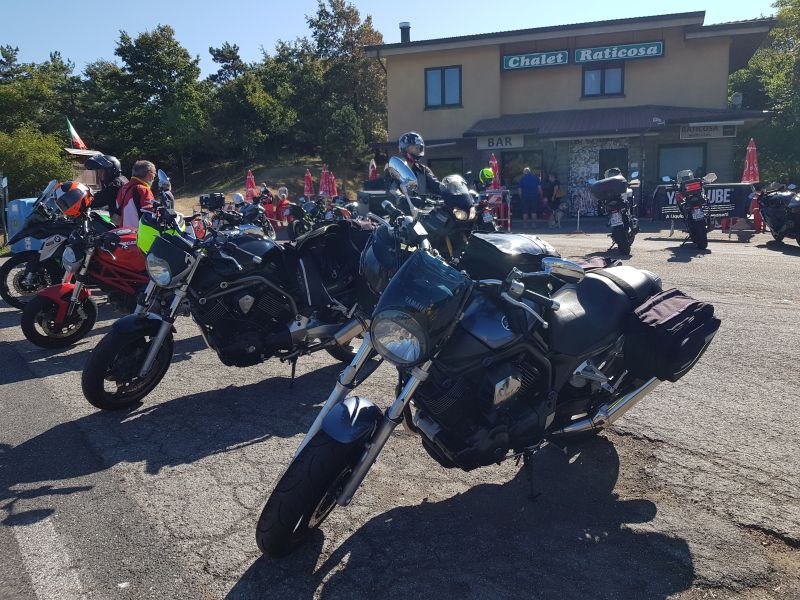 Bene, partiamo… autostrada fino a Bologna – Arcoveggio e da qui saliamo sui colli bolognesi e raggiungiamo il Passo della Raticosa. Sosta allo Chalet…