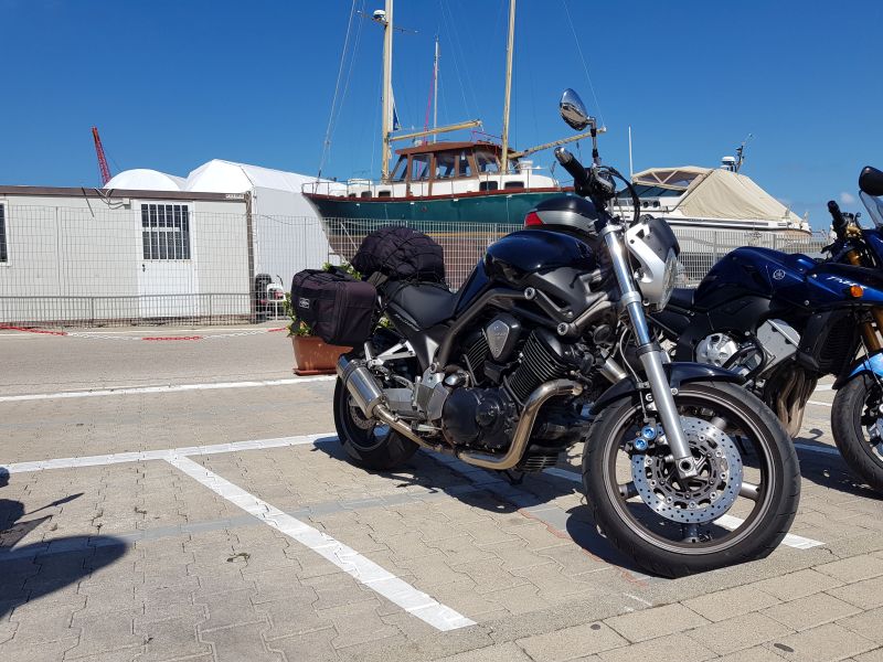 AdrianoModeratoreFa strada Ivan, il tragitto è brevissimo, dobbiamo semplicemente raggiungere il porto, dove ci aspetta da un po’ Gullivel che si è fatto, come detto, una sparata unica da Venezia partendo questa mattina. E’ venuto in Harley stavolta… dura da accettare per il gruppo… ma questa volta è perdonato, sarebbe stata davvero dura il Bull fare tutti quei chilometri in autostrada 😵