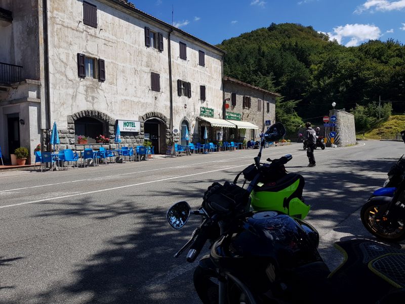 Arriviamo a Barberino e ci fermiamo per fare il pieno, Gullivel viene da me… tira su la mentoniera del casco e mi fa “Adri ma tu hai visto il Passo Futa ???” ed io “Boh… ho visto sulla destra un’osteria con scritto “Futa” e davanti c’era una bici… ma di passi non ne ho visti” 😂